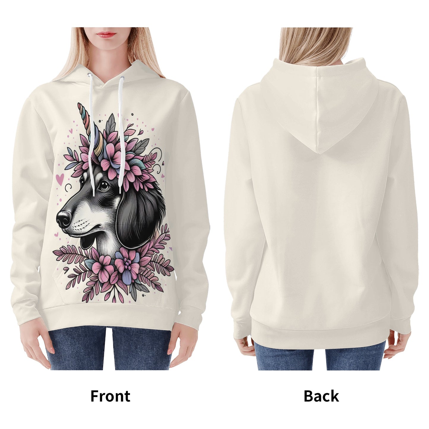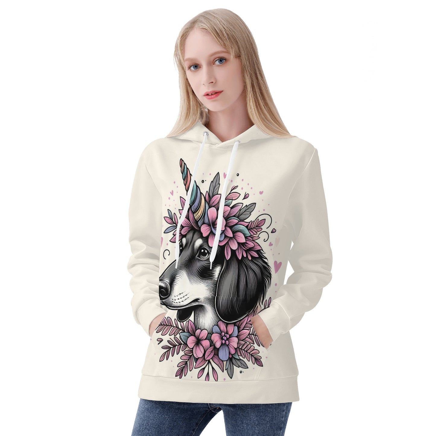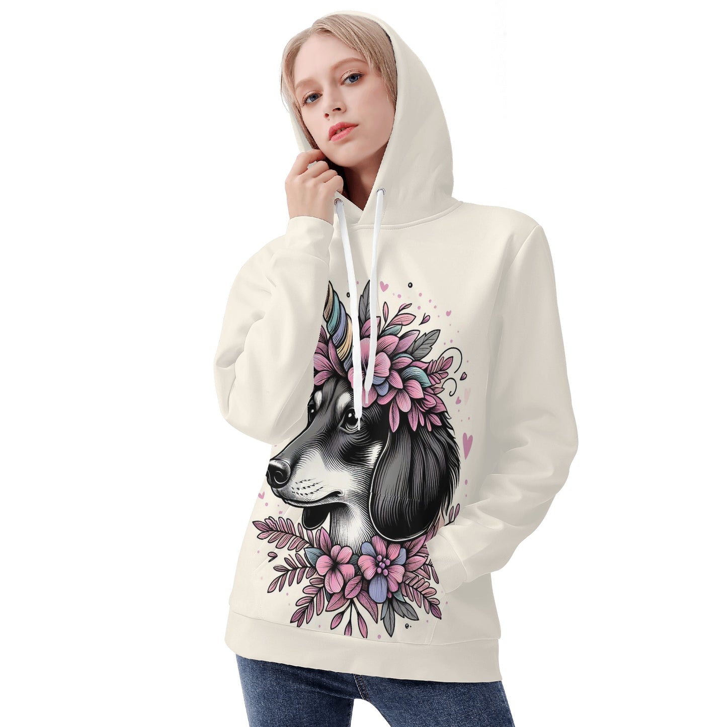 If you love dachshunds, you will love this cozy and stylish women’s hoodie. This hoodie is made of polyester material that is soft, comfortable, and warmer for daily wear. It is cut and sewn piece by piece to fit your body perfectly. It has a hood with drawstrings and a kangaroo pocket for extra warmth and convenience.