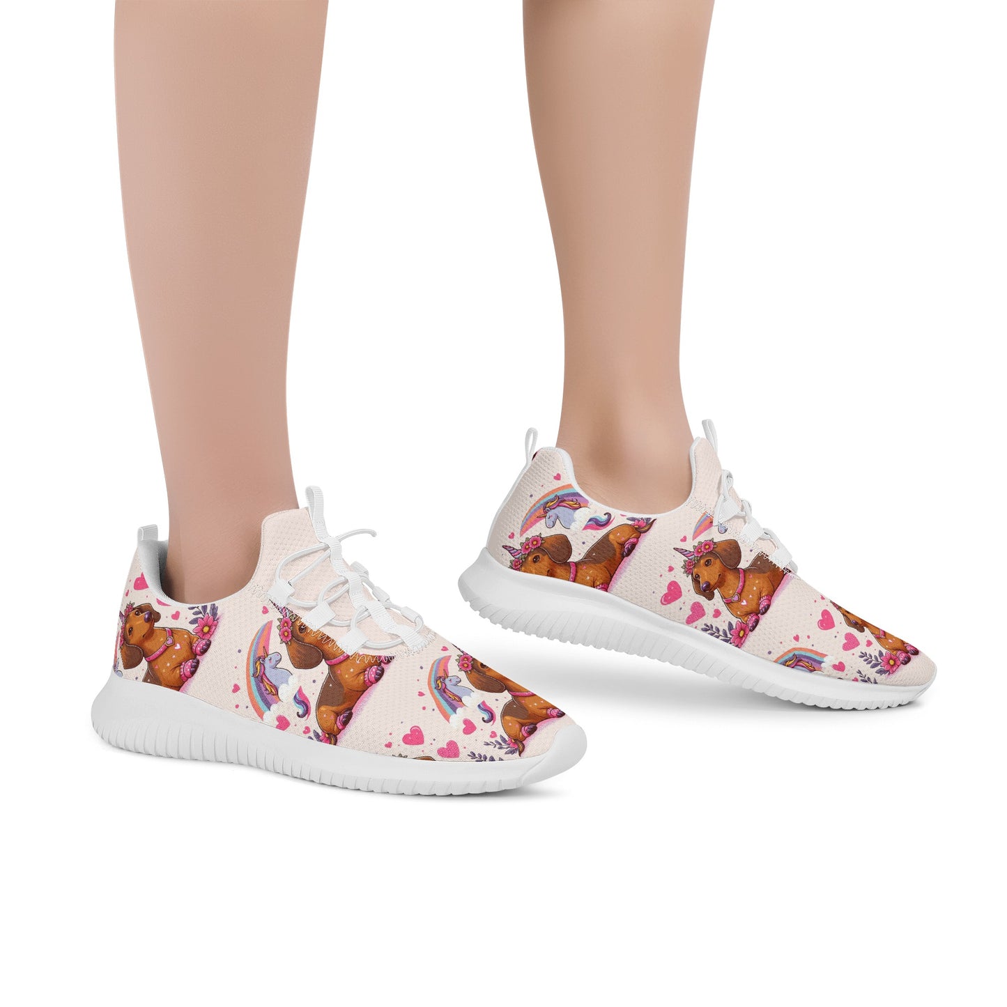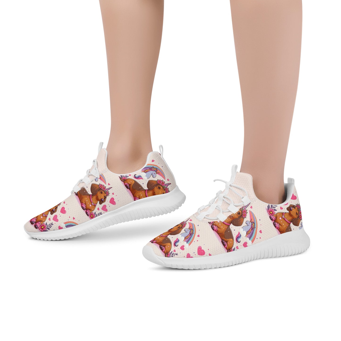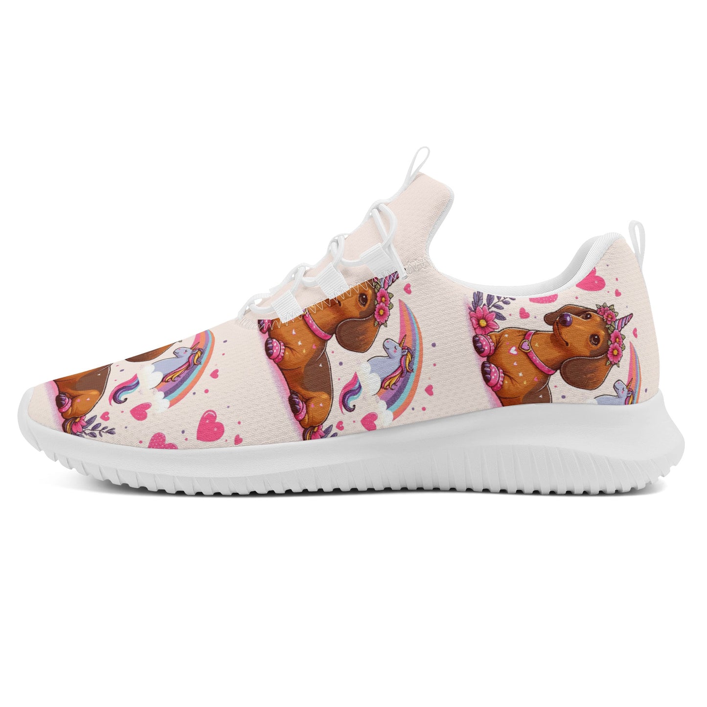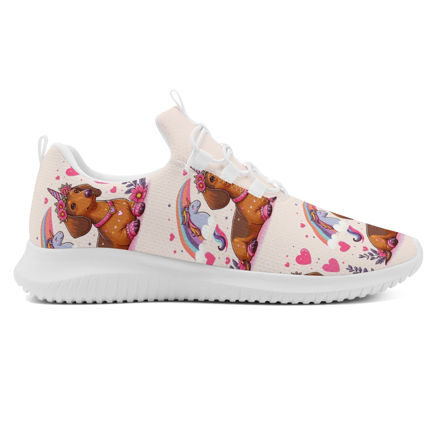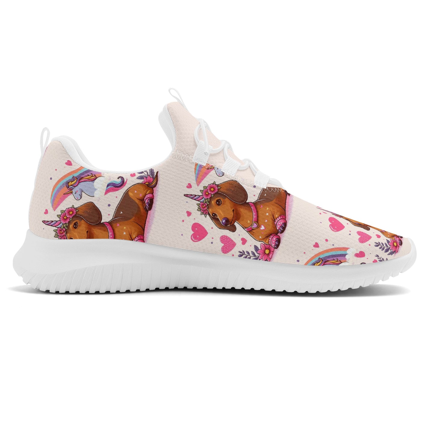 The best part is that these shoes are printed with a beautiful and colorful design of dachshunds in various poses and expressions. You will love the vibrant and eye-catching look of these shoes that will make you stand out from the crowd. Whether you wear them for casual or formal occasions, these shoes will match any outfit and season.