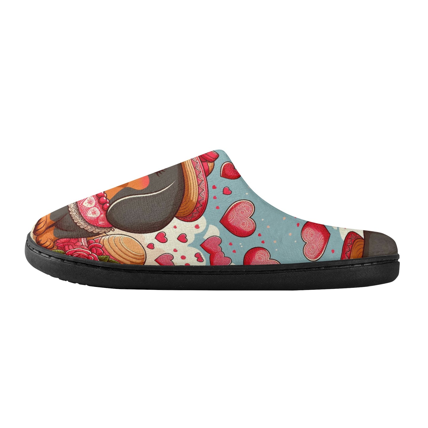 These slippers are custom made with an all over print of cute dachshunds in various poses and colors. They have a rounded, closed toe and flat heel style construction that fits comfortably on your feet. They are made of 100% polyester plush fabric that keeps your feet warm and cozy in cold weather. They also have a high quality rubber material on the sole that provides a non-slip safety and durability.