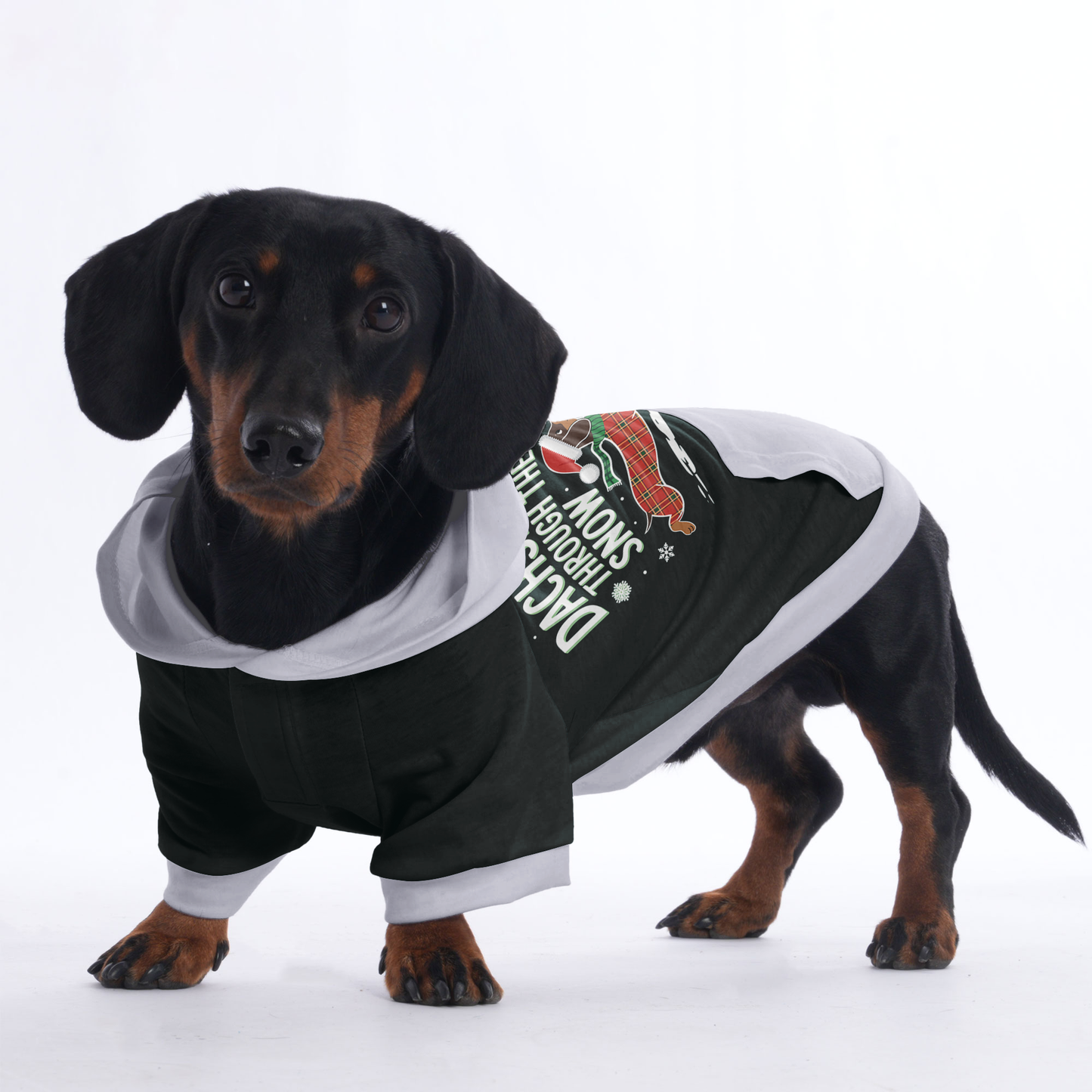 Dress your dachshund in style and comfort with our custom-designed hoodies, perfect for dachshunds and other small dog breeds.