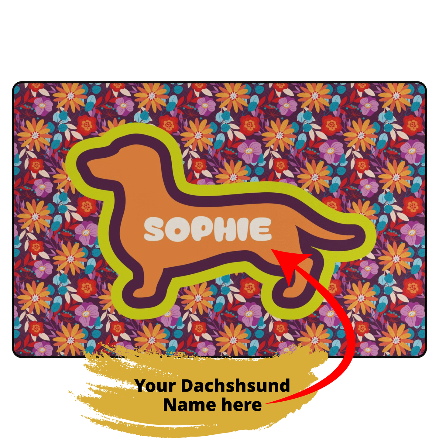 Indulge in pure comfort with our personalized Dachshund Living Room Rug, featuring your Dachshund's name.