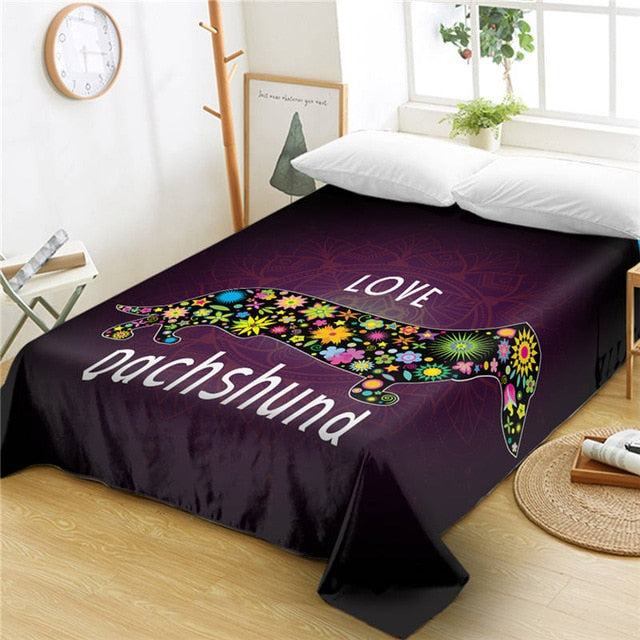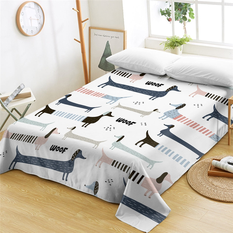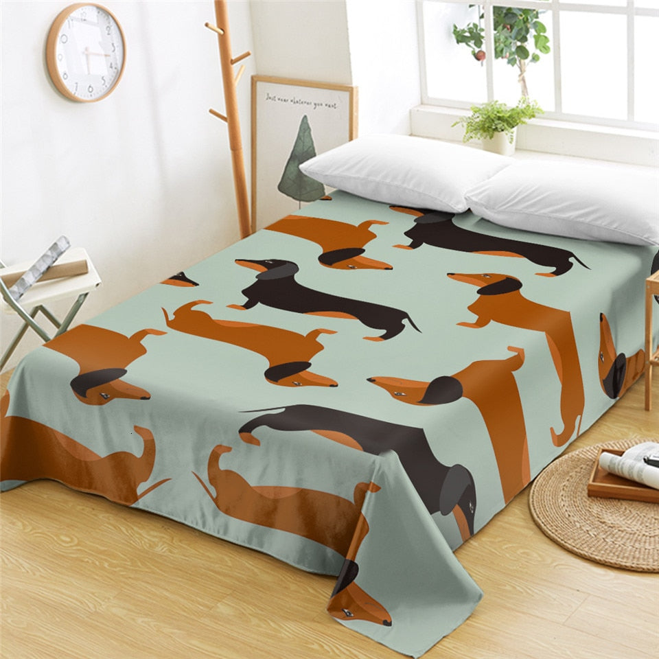 Dachshund Bed Colorful Puppy Printed Flat Sheet