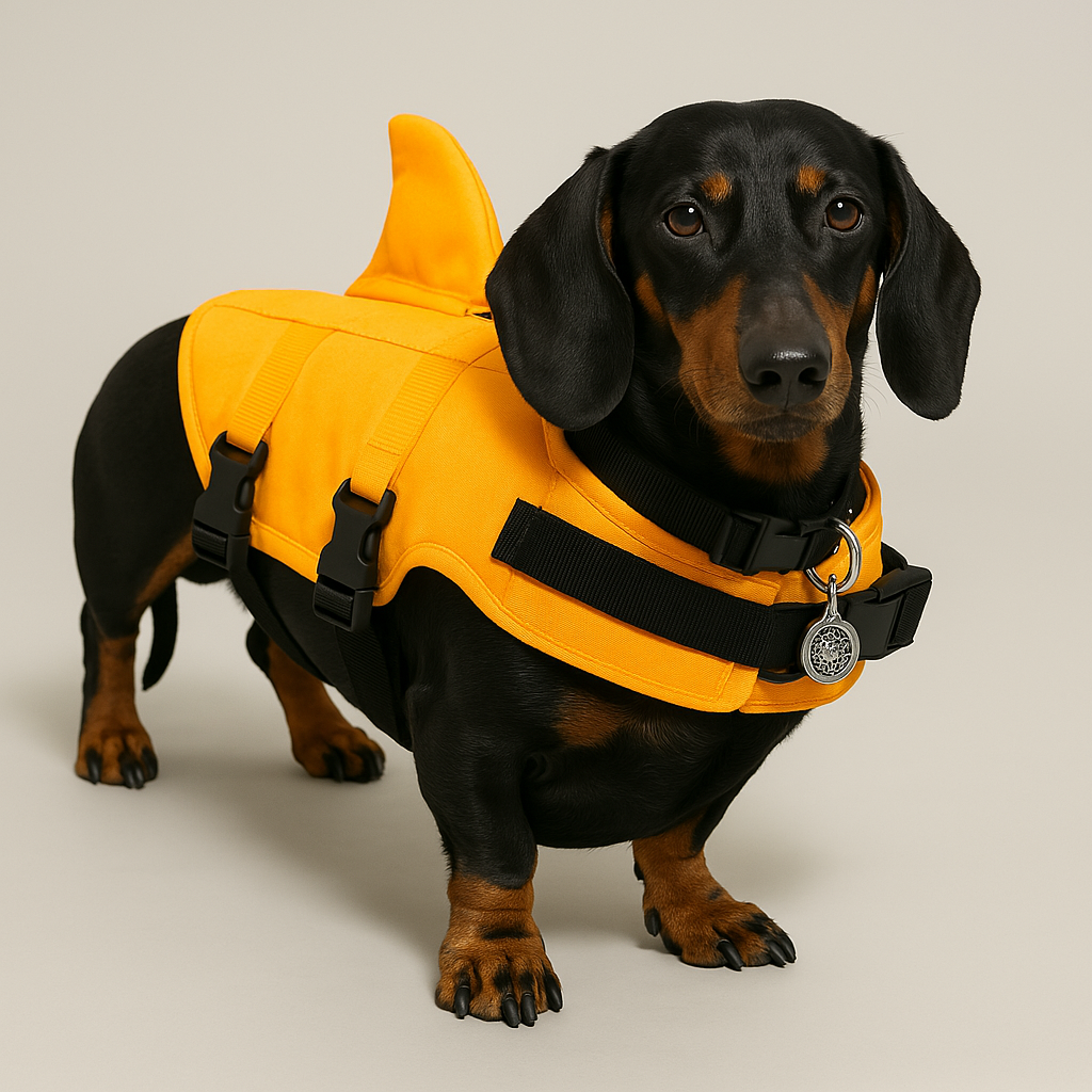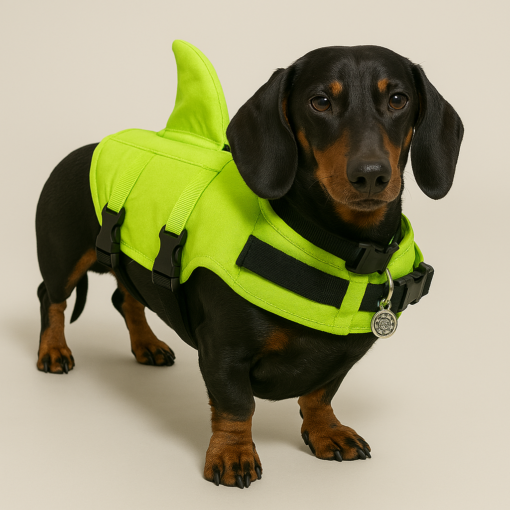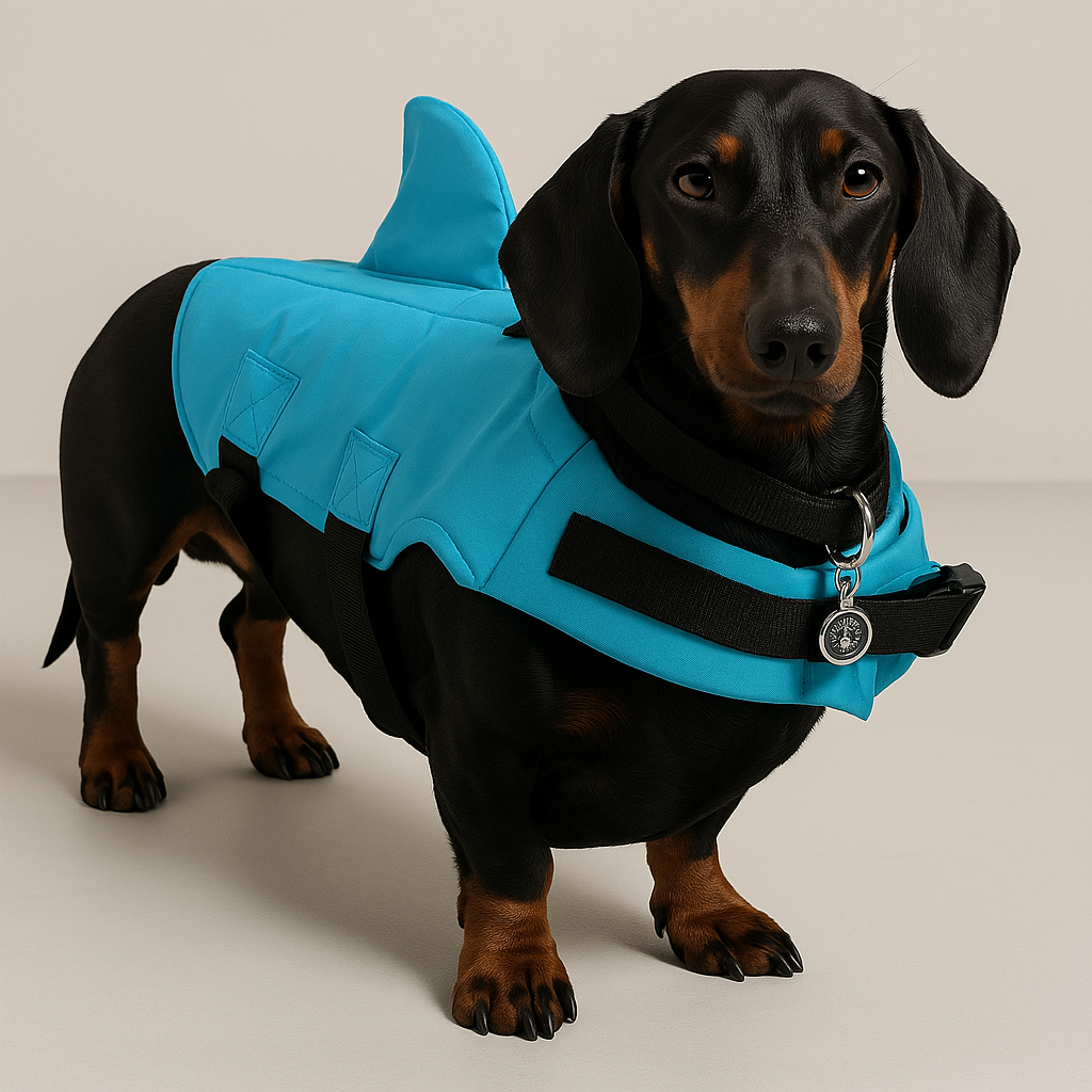 Elevate your Dachshund's fashion game with our Dachshund Shark Vest – an essential addition to your pet's wardrobe. This Dog Life Vest seamlessly combines style with practicality, functionality, and durability. Crafted from high-density, buoyant professional diving fabric, it offers optimal protection for your pet's delicate waist and abdomen.