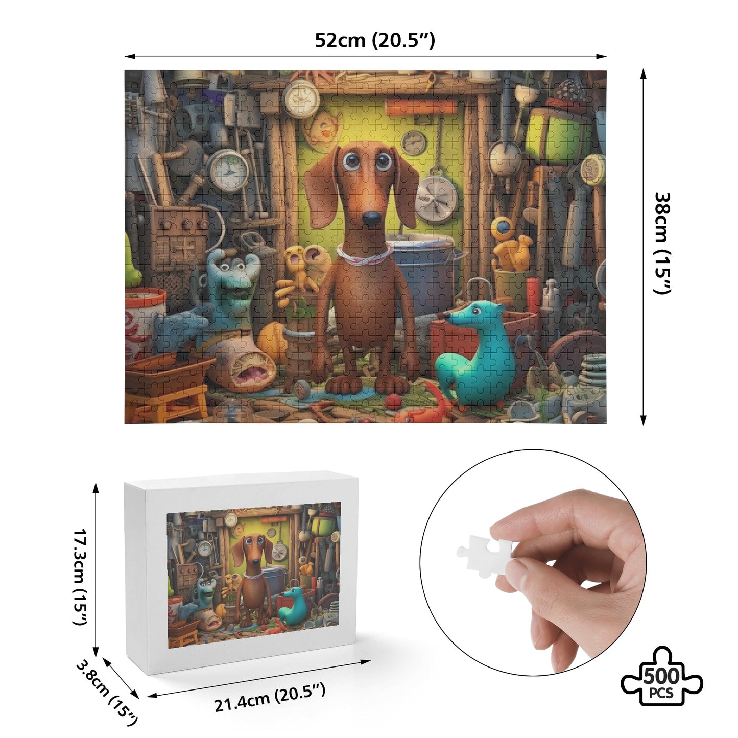 Introducing our Dachshund Lovers' Delight: The 500-Piece Wooden Puzzle!