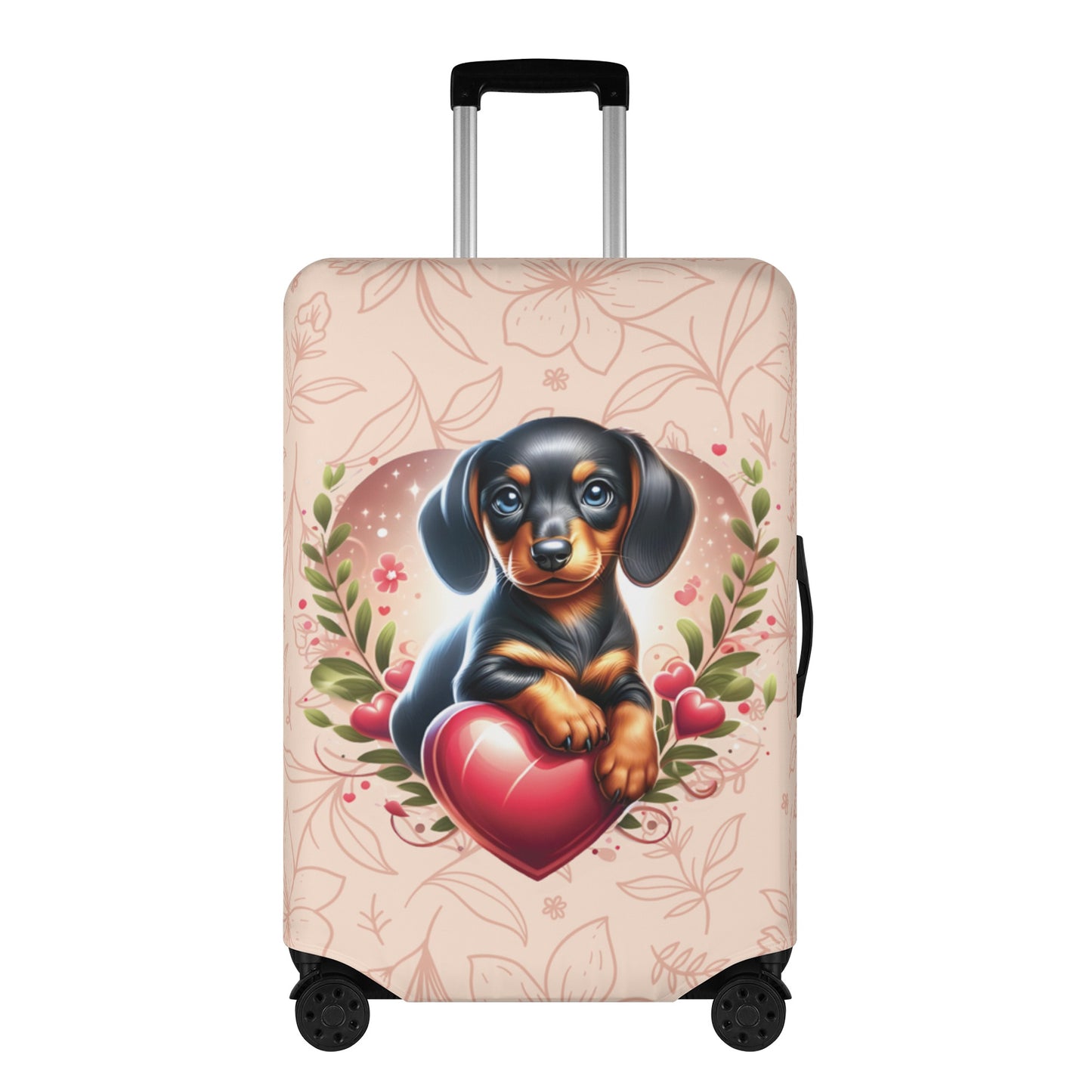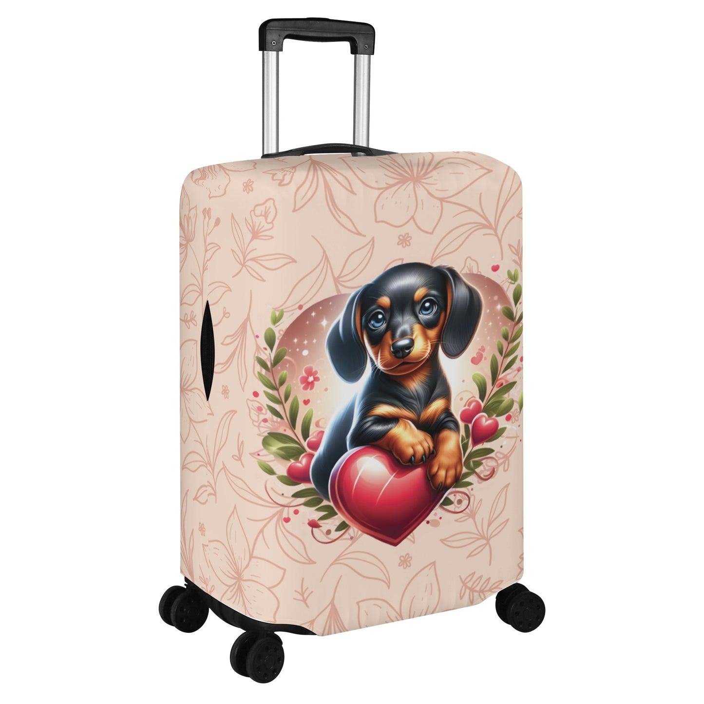 Embrace travel with our Dachshund-themed luggage cover. Made from a durable blend of polyester and canvas, it safeguards against travel wear and weather. Available in sizes S to XL, it suits every trip.