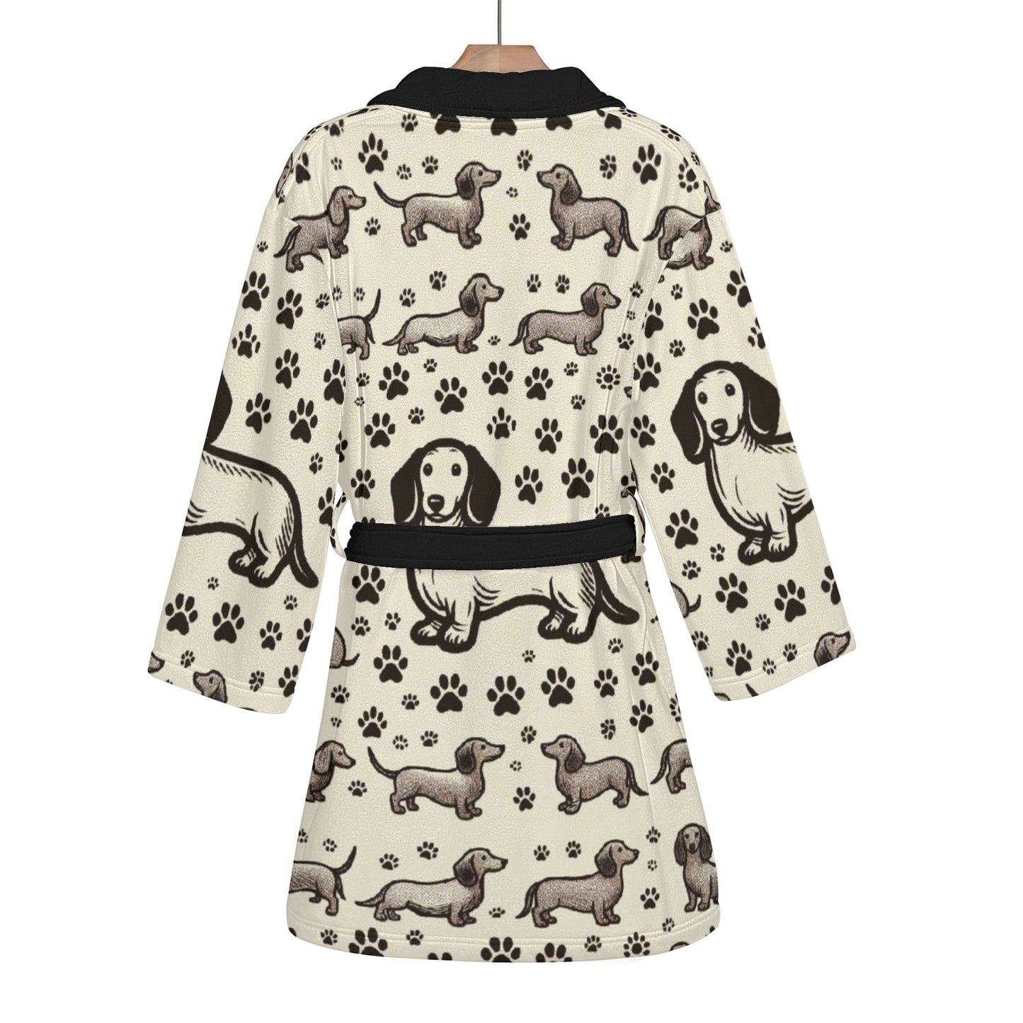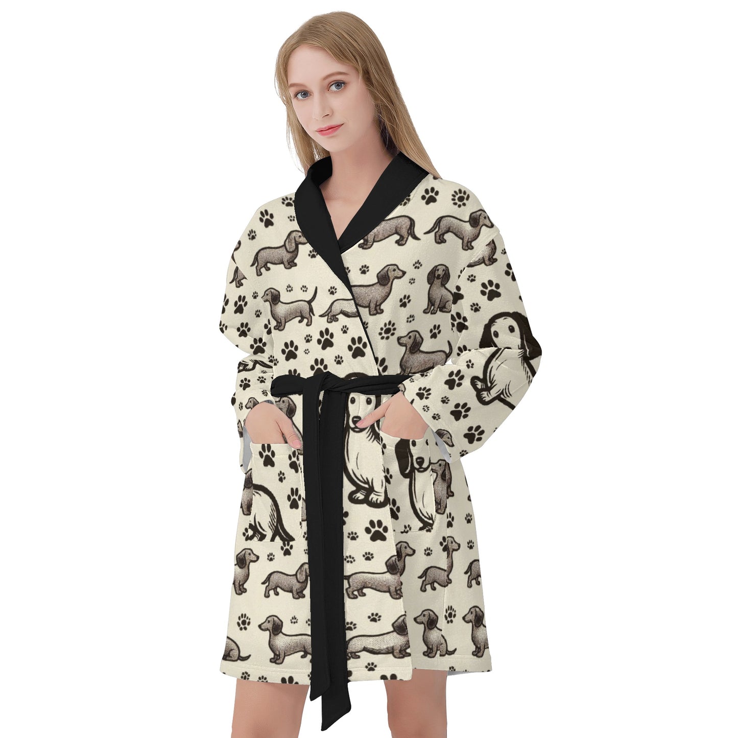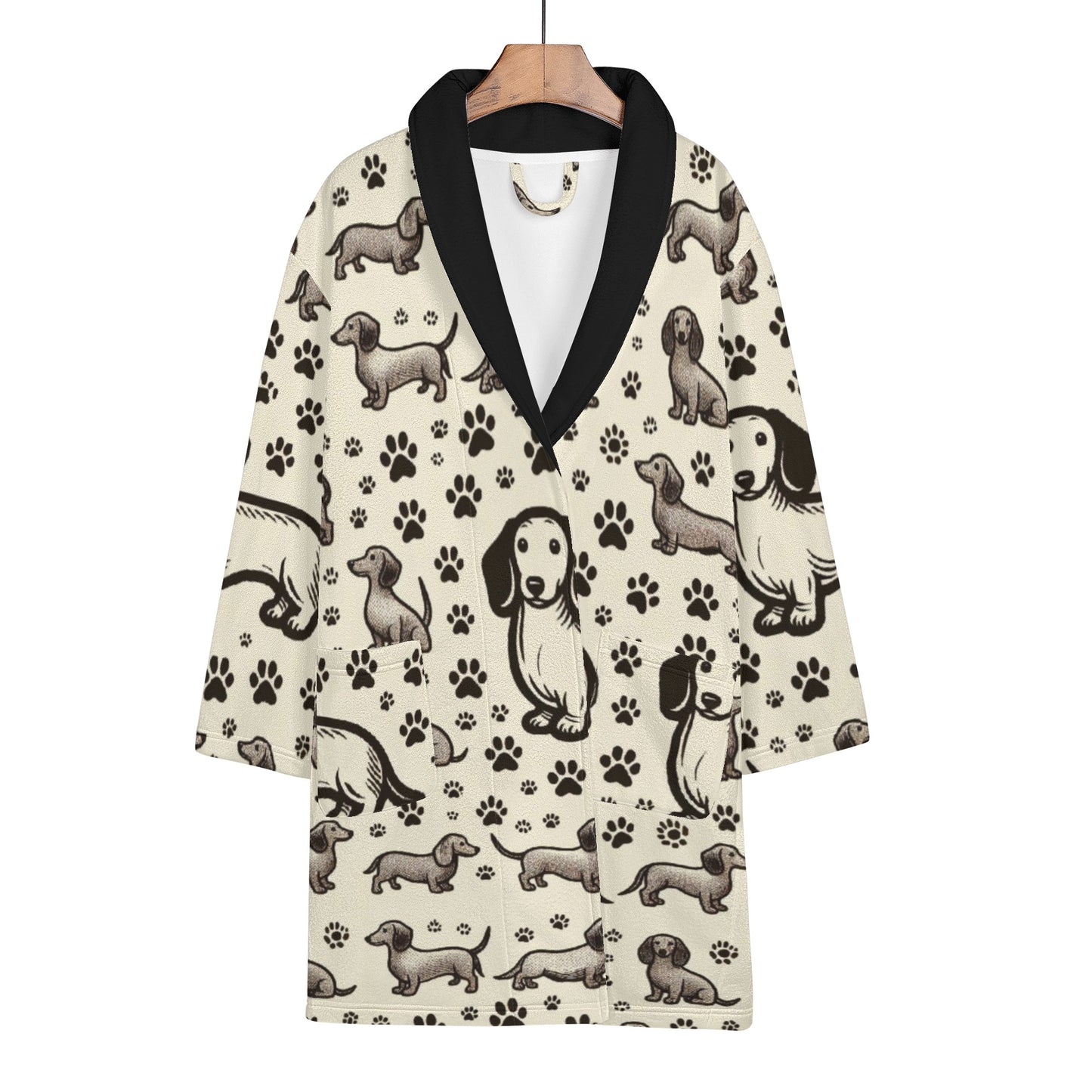 Wrap yourself in cozy comfort with this adorable dachshund lovers bathrobe. This bathrobe features a cute pattern of dachshunds in various colors and poses, perfect for any dog lover.