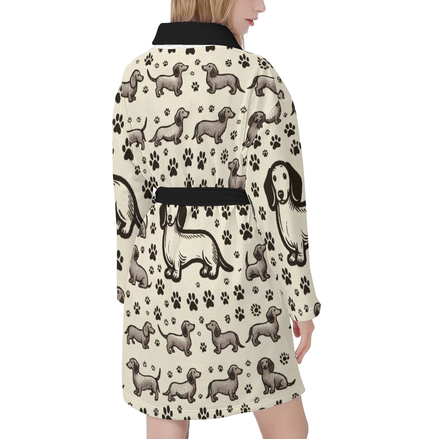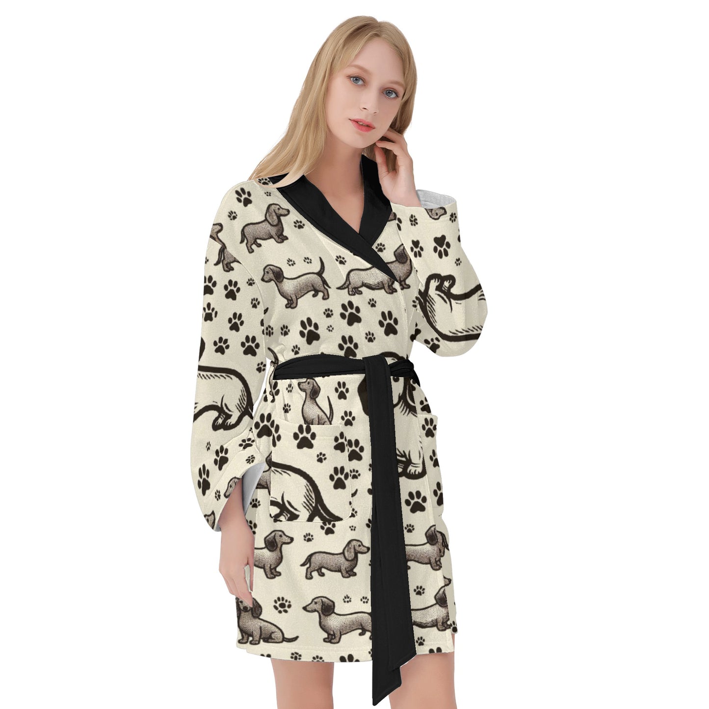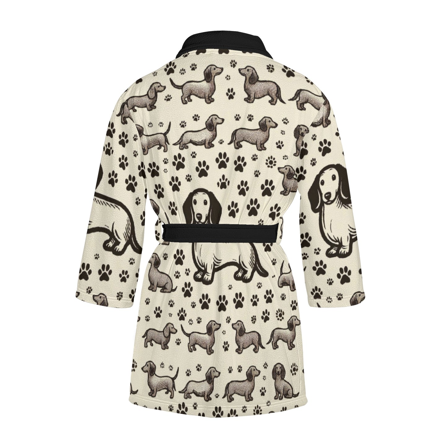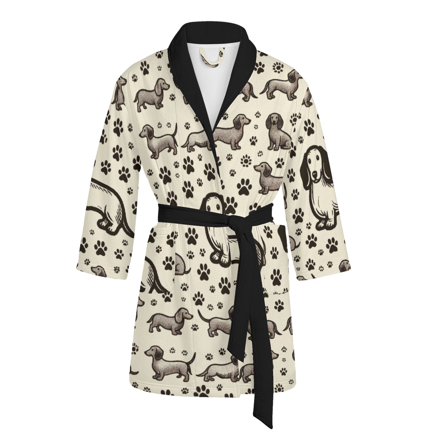 Wrap yourself in cozy comfort with this adorable dachshund lovers bathrobe. This bathrobe features a cute pattern of dachshunds in various colors and poses, perfect for any dog lover.
