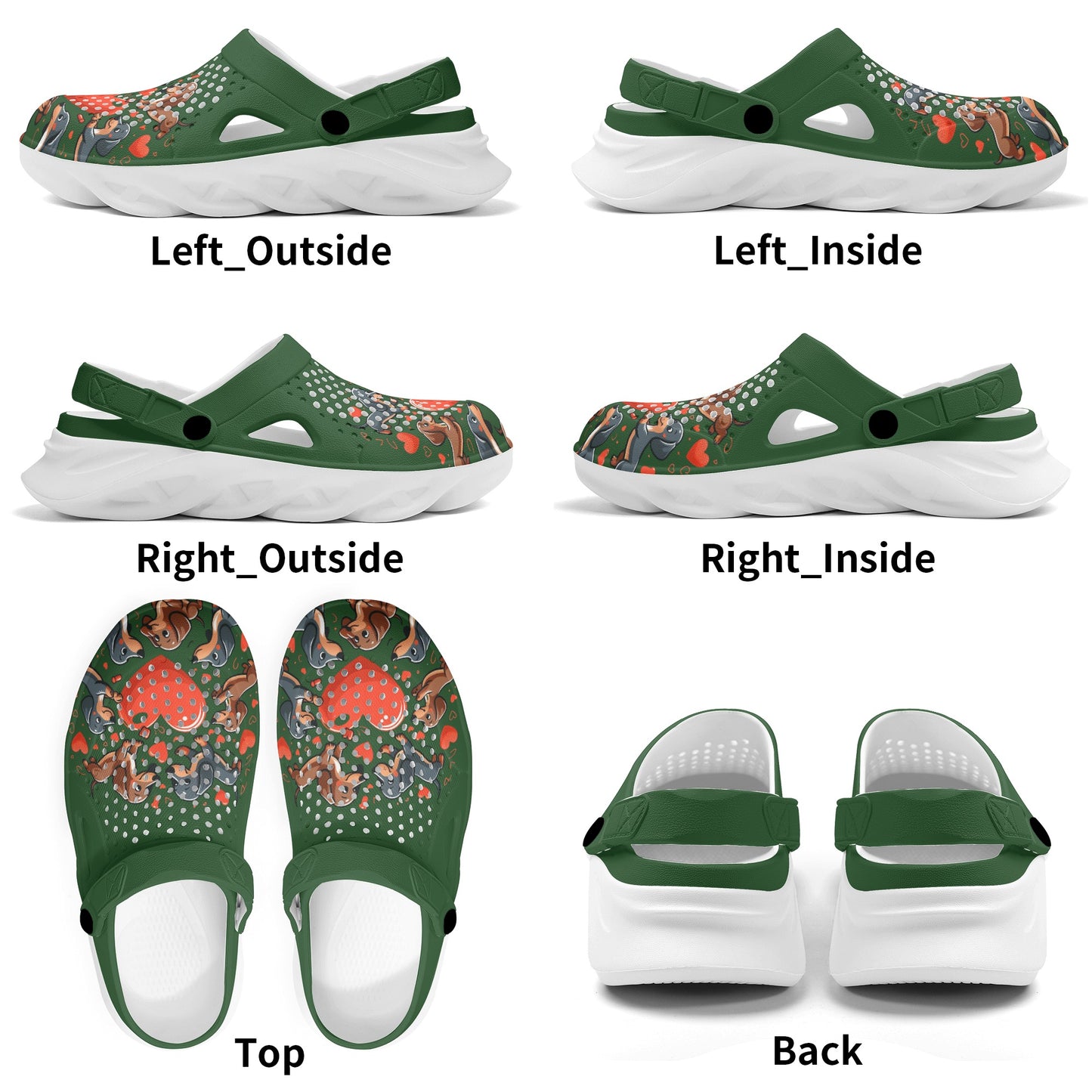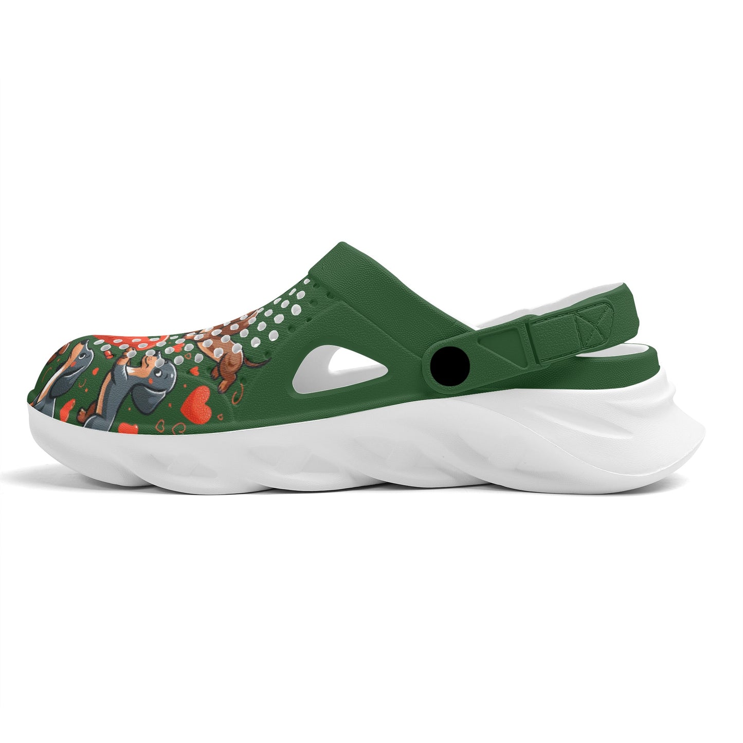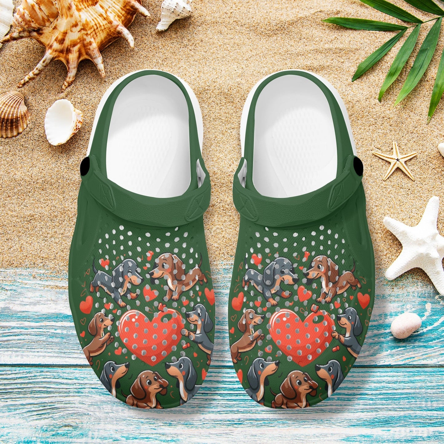 "Step into summer with style and comfort in our Dachshund Lovers' Hollow Out Clogs! These custom-printed clogs are a must-have for dachshund fans, featuring vibrant, all-over dachshund designs that showcase your love for the breed. Crafted from high-quality EVA, these clogs offer the perfect blend of flexibility and durability, making them ideal for everyday wear.