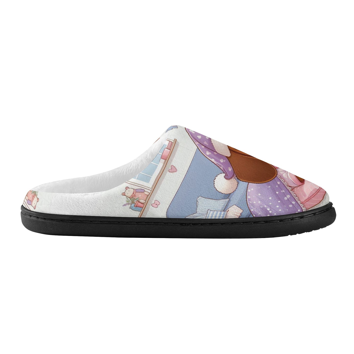 These slippers are custom made with an all over print of cute dachshunds in various poses and colors. They have a rounded, closed toe and flat heel style construction that fits comfortably on your feet. They are made of 100% polyester plush fabric that keeps your feet warm and cozy in cold weather. They also have a high quality rubber material on the sole that provides a non-slip safety and durability.