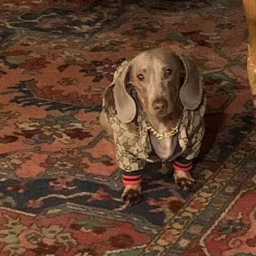 - Classic Monogram Design: The chic monogram print gives your dachshund a polished and luxurious look, perfect for winter outings.