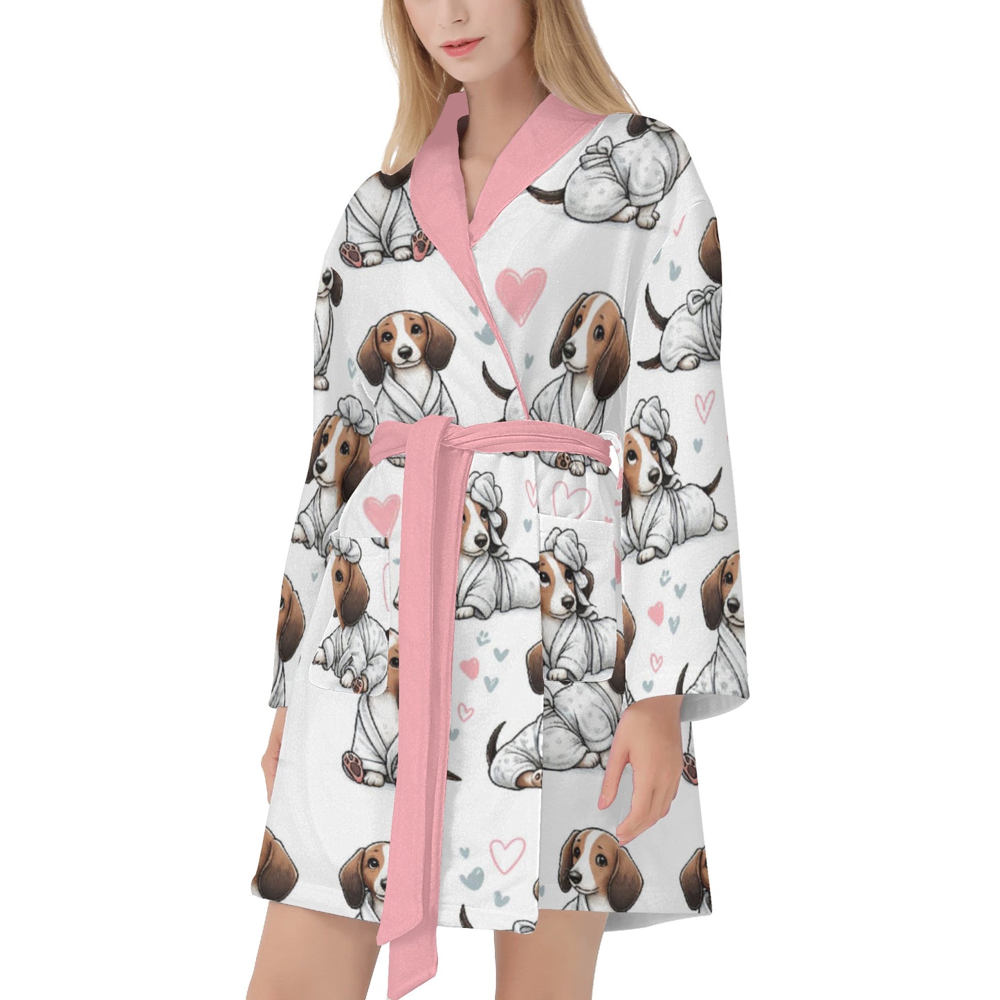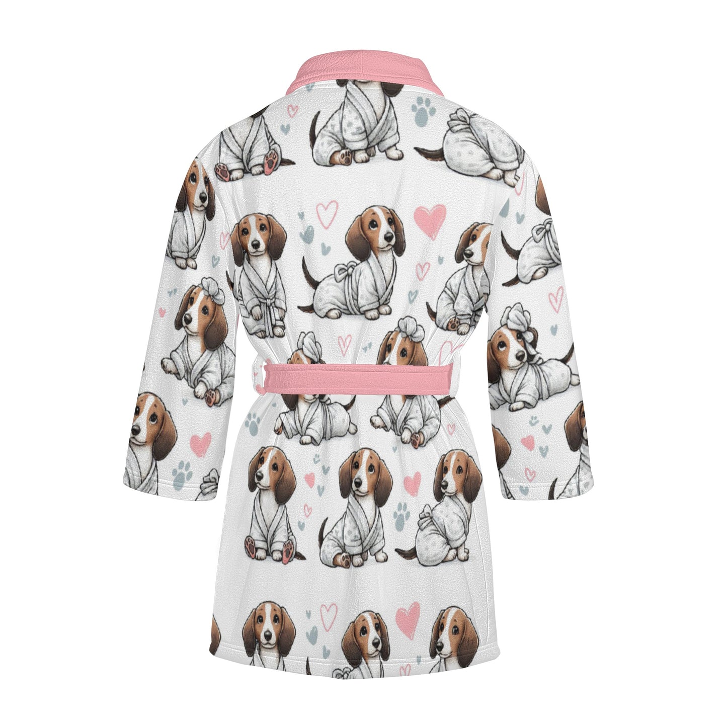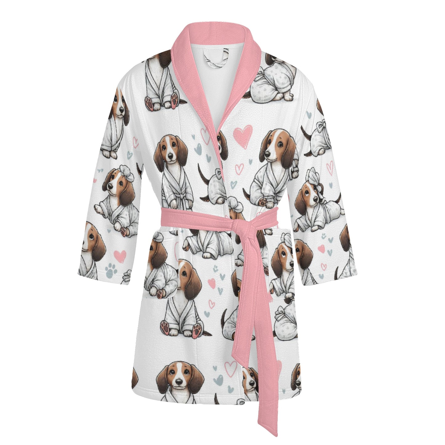Wrap yourself in cozy comfort with this adorable dachshund lovers bathrobe. This bathrobe features a cute pattern of dachshunds in various colors and poses, perfect for any dog lover.