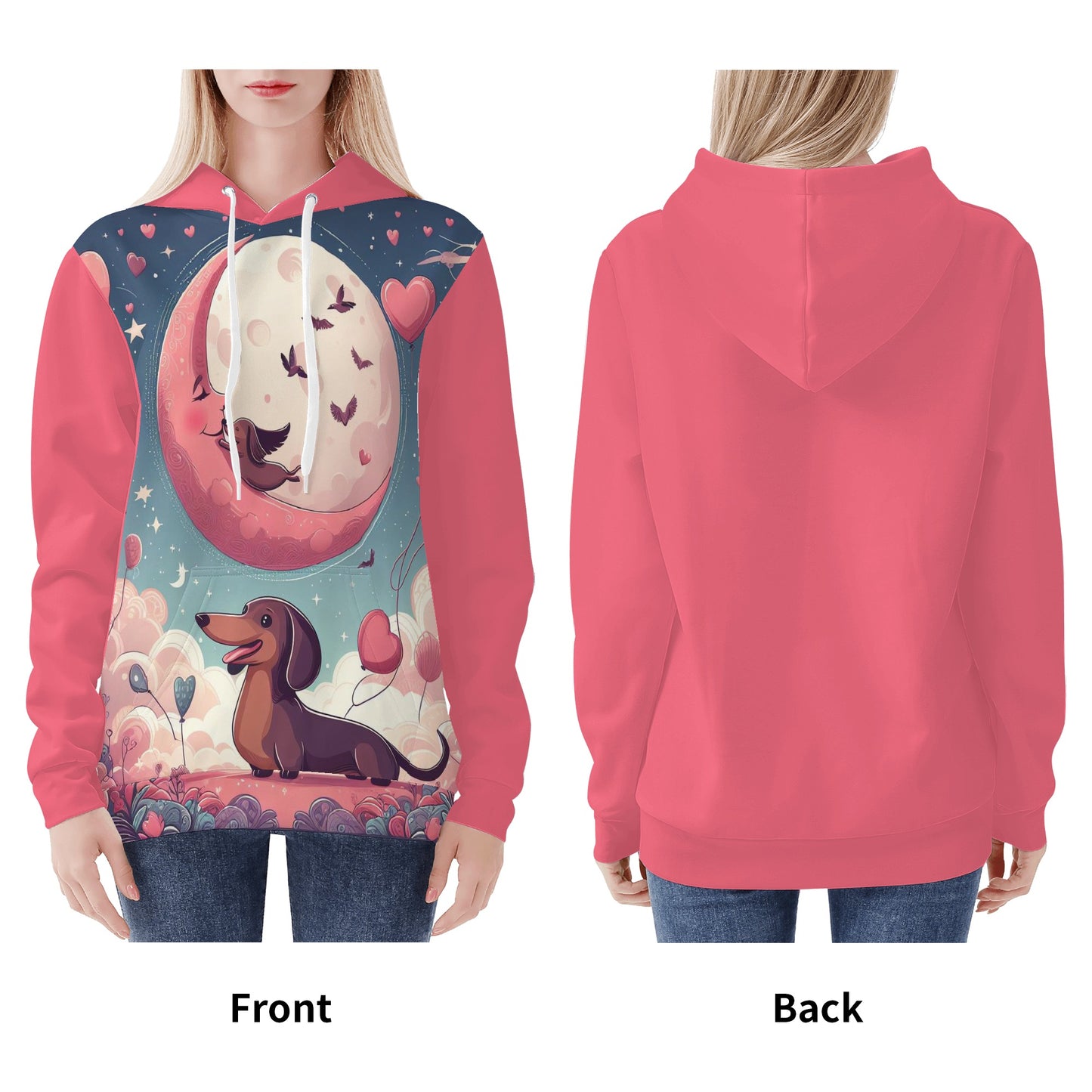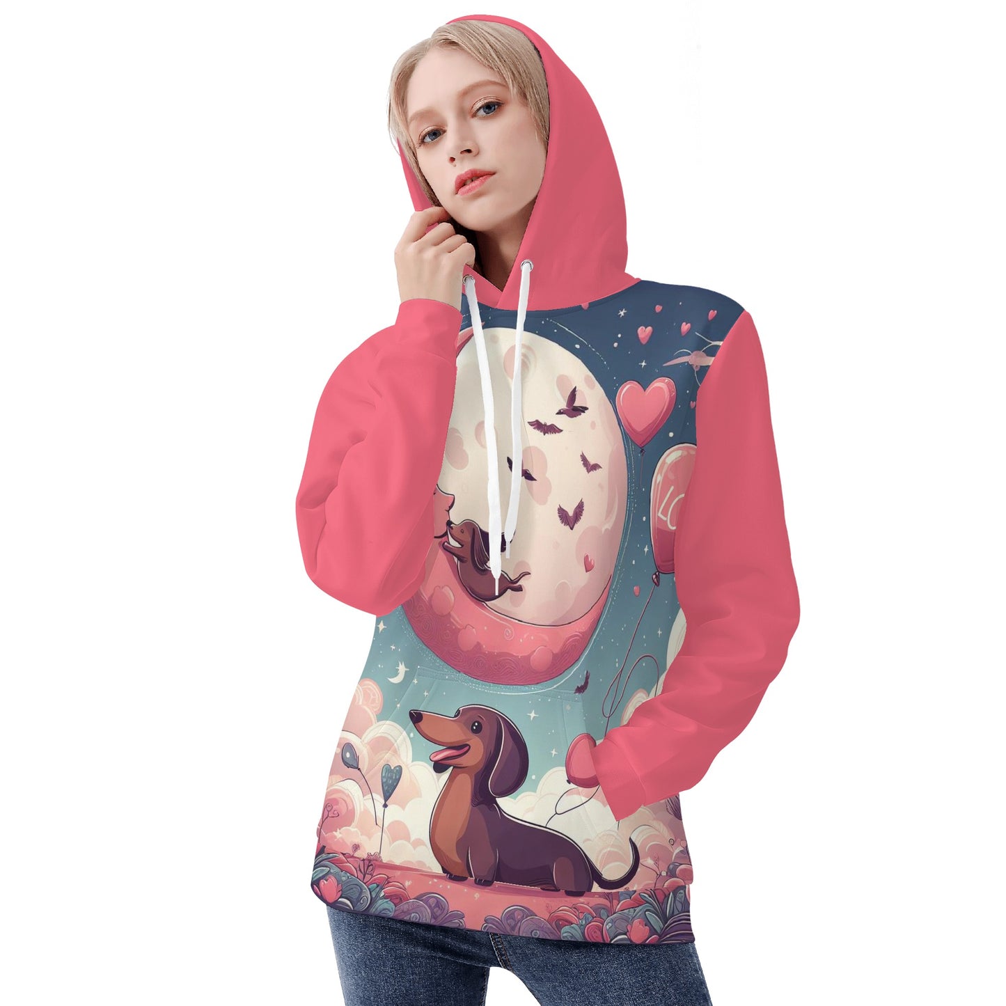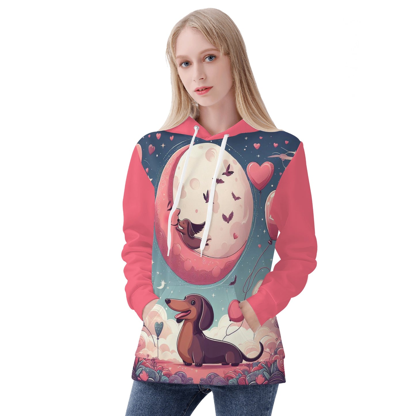 If you love dachshunds, you will love this cozy and stylish women’s hoodie. This hoodie is made of polyester material that is soft, comfortable, and warmer for daily wear. It is cut and sewn piece by piece to fit your body perfectly. It has a hood with drawstrings and a kangaroo pocket for extra warmth and convenience.