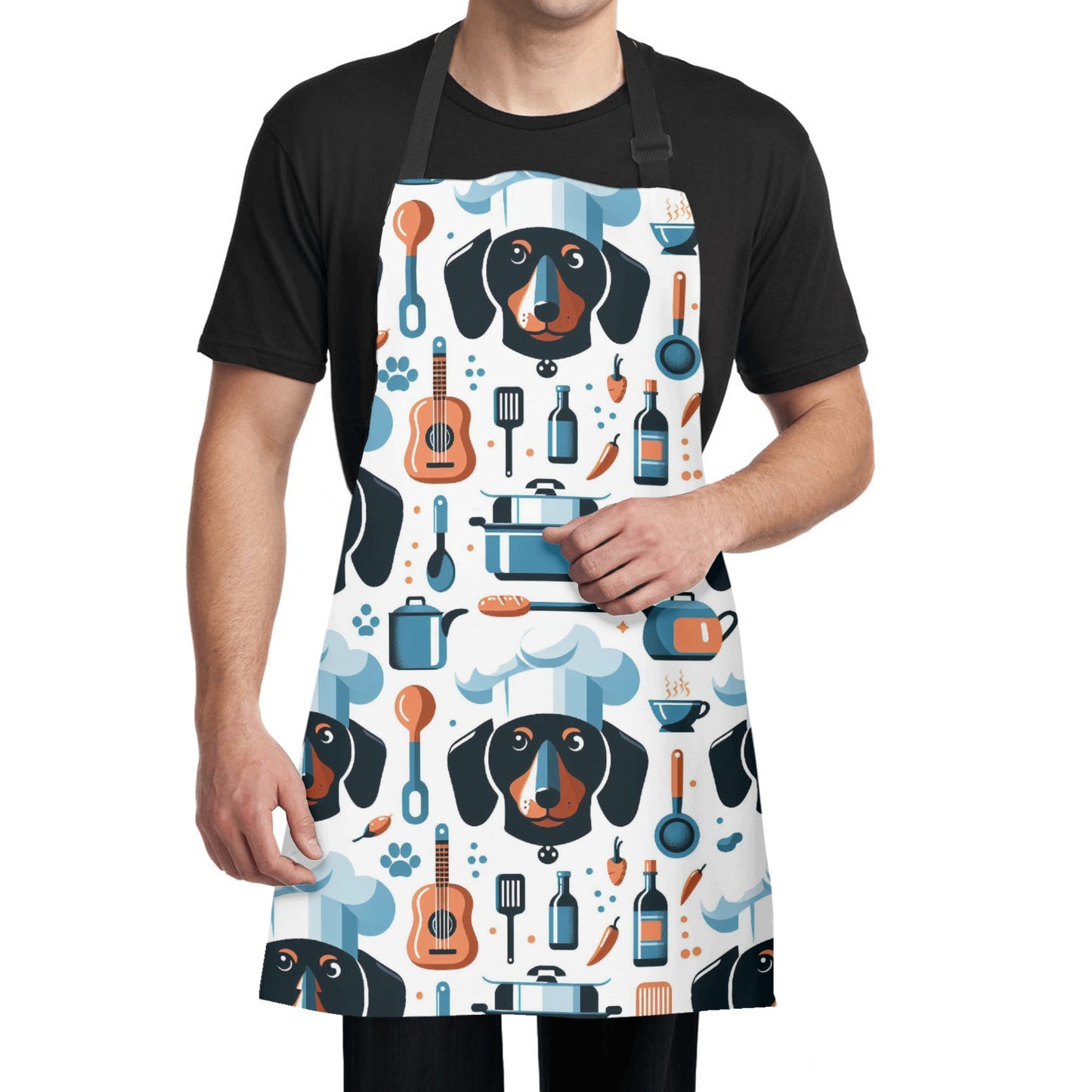 Are you a fan of dachshunds, the adorable sausage dogs with long bodies and short legs? If so, you will love this dachshund apron, featuring a cute print of various dachshunds in different colors and poses. This apron is made of high-quality polyester fabric, which is durable, lightweight, and easy to clean. It has an adjustable neck strap and long waist straps, so you can customize the fit to your body. Whether you are cooking, baking, or painting, this apron will protect your clothes from spills and stains, while showing off your love for dachshunds. To care for this apron, simply hand wash or machine wash and dry as needed. This dachshund apron is a perfect gift for yourself or any dachshund lover in your life. Order yours today and enjoy the compliments from your friends and family! 🐶