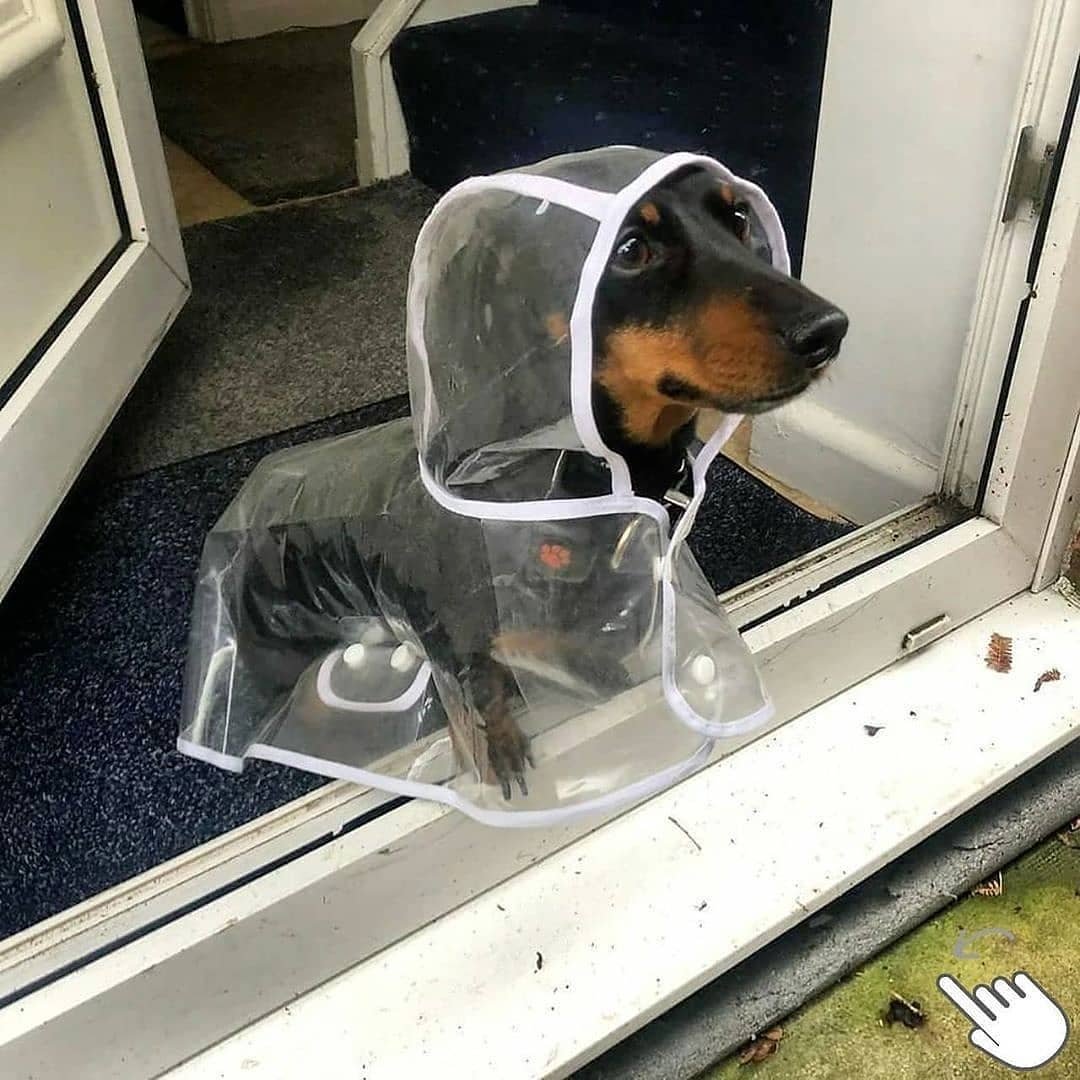 - The Dachshund raincoat helps to keep pets dry and comfortable in wet weather. It can satisfy pets' needs to walk in the outside when it is rain.