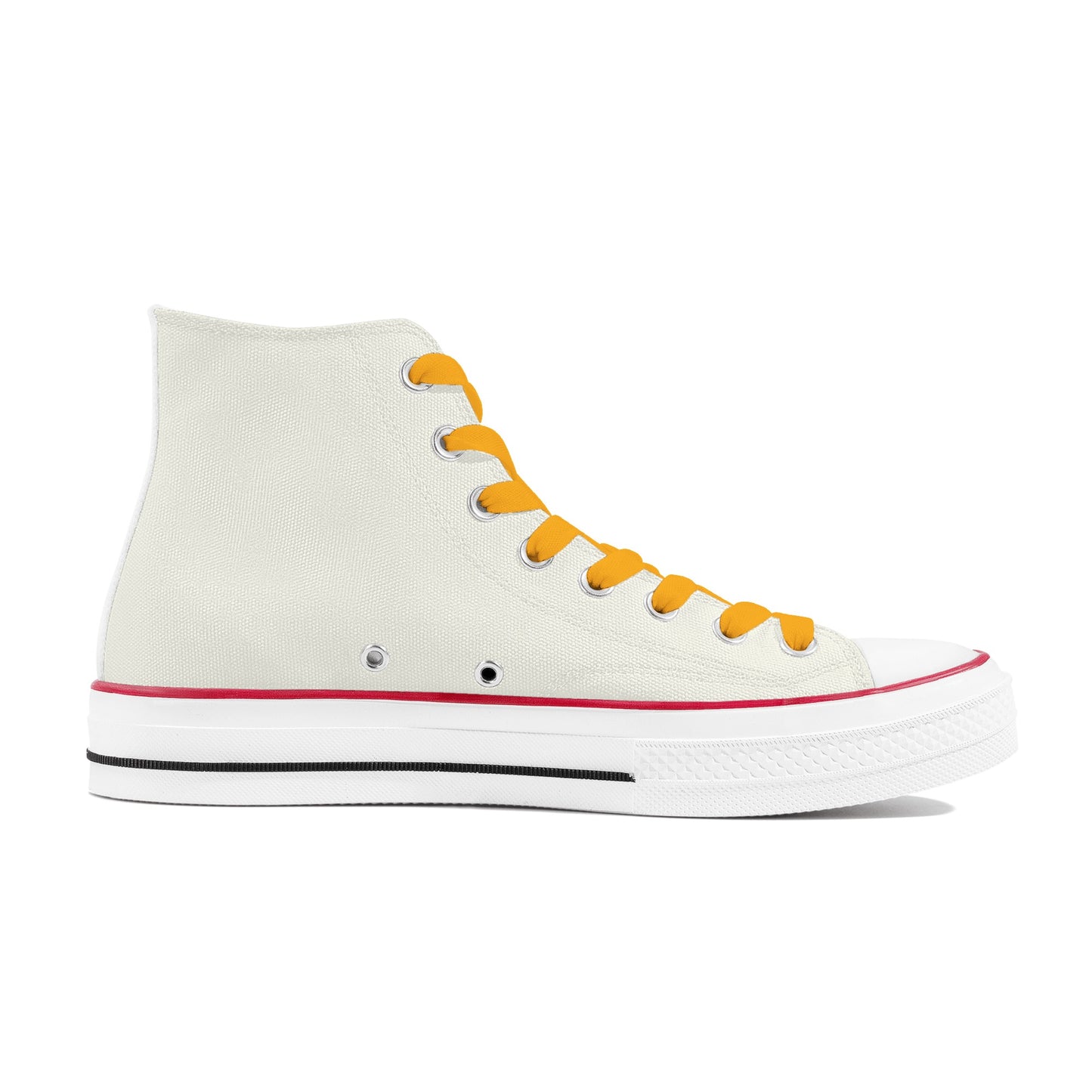 These shoes are not only fashionable, but also comfortable and durable. They have a white high top construction with 8 eyelets lace-up closure for a snug fit, a canvas upper for a comfortable and breathable fit, and a rubber outsole and removable EVA insole for exceptional slip-resistance, better grip and sustained support.