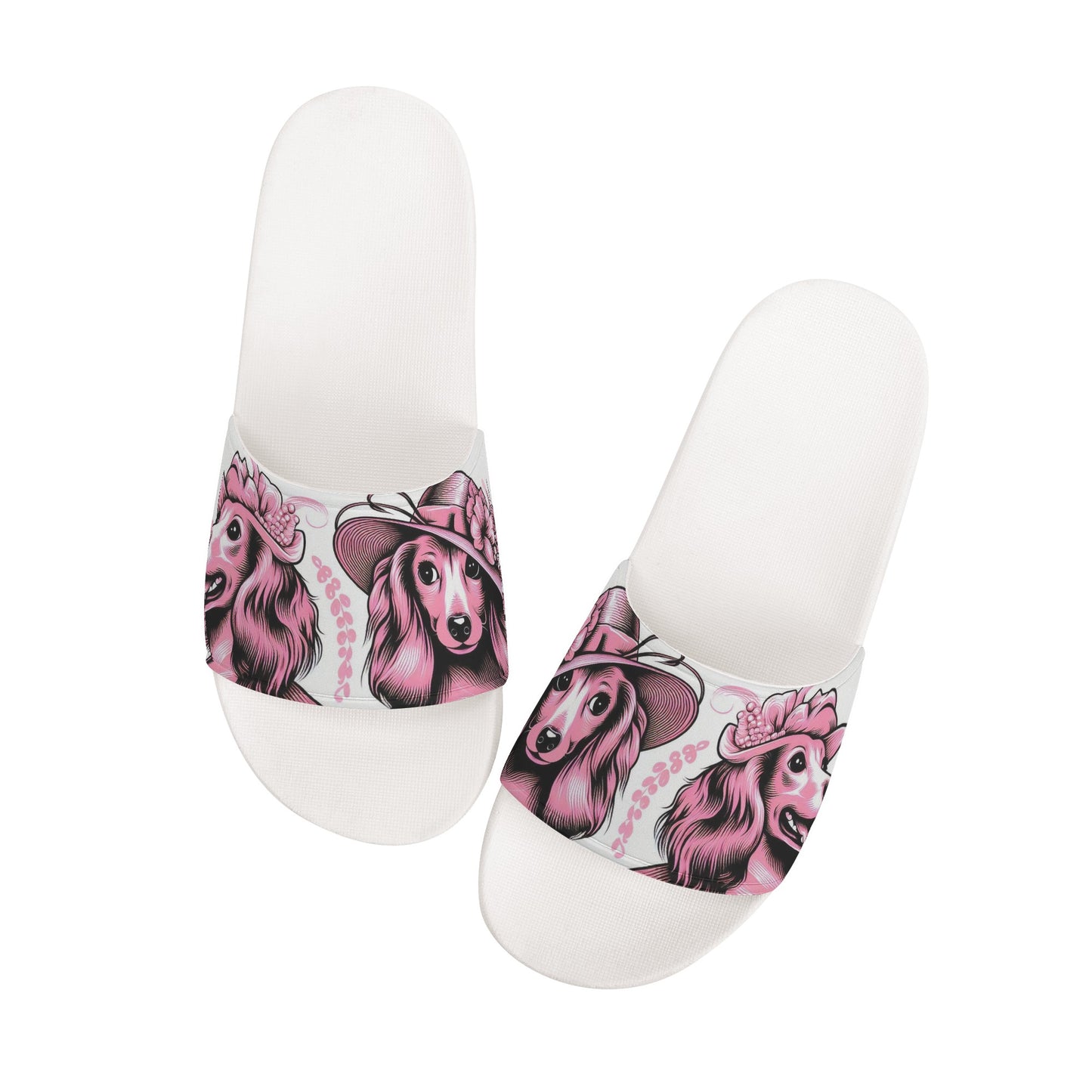 Are you a fan of the long-bodied, spunky, and adorable dachshund? Do you want to show off your love for this breed in a fun and fashionable way? If so, you will love these custom printed slide sandals!