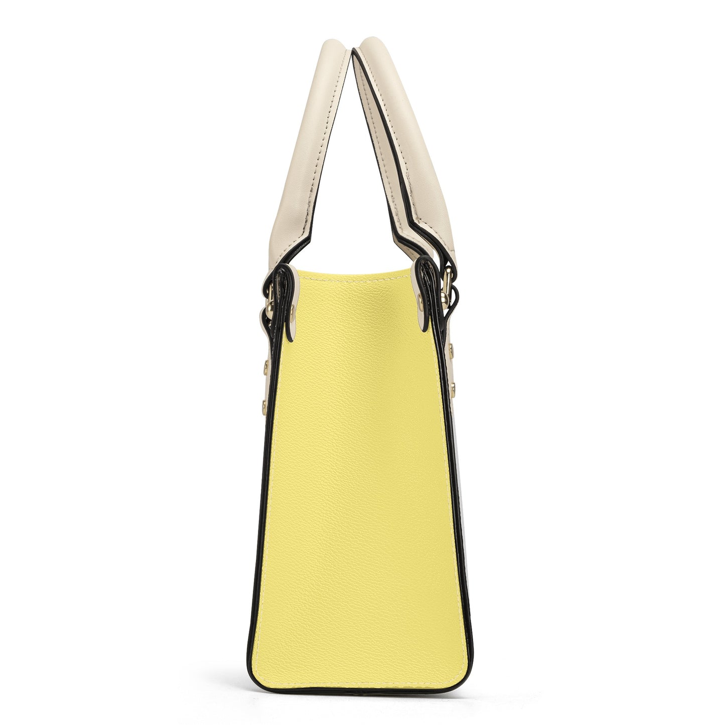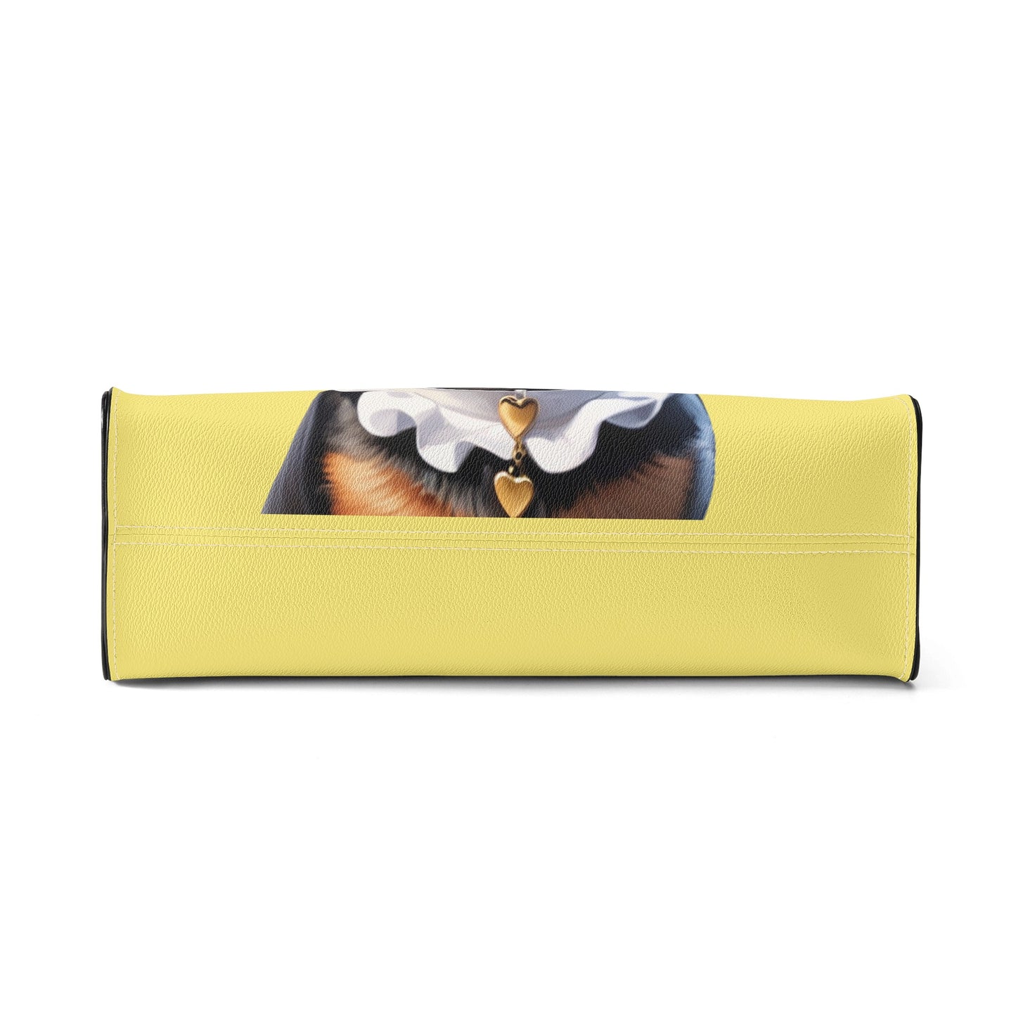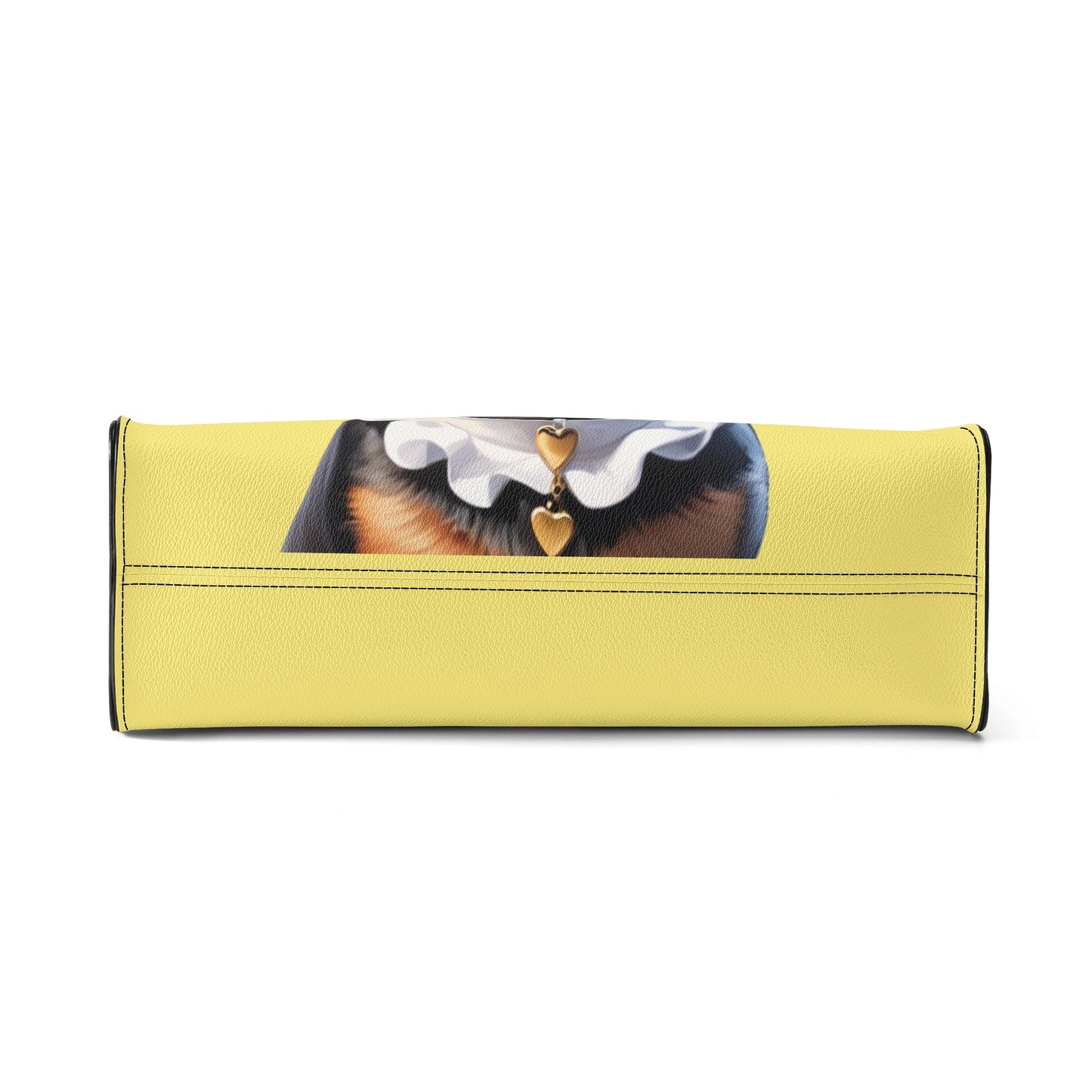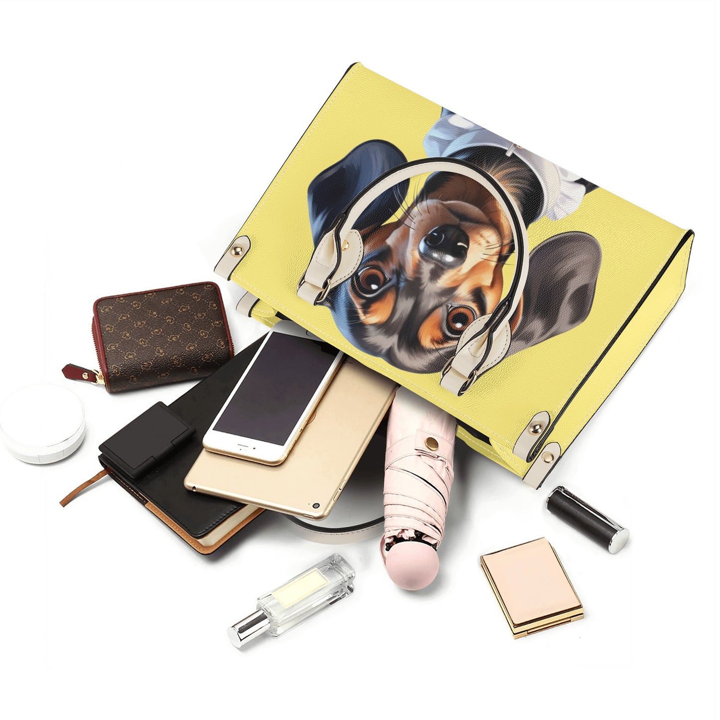 - This handbag is made of high-quality PU leather, which is durable, water-resistant, and easy to clean. It features a smooth zipper and an all over printing customized style, with a charming dachshund pattern that will make you smile every time you look at it. The main compartment design with two top handles maintains balance and allows you to carry your essentials with ease. The handbag also has one inside pocket with a sewn-in and non-removable shoulder strap, which gives you more options to wear it as a crossbody or a shoulder bag. The white and black color scheme is versatile and elegant, and it can match different outfits and occasions.