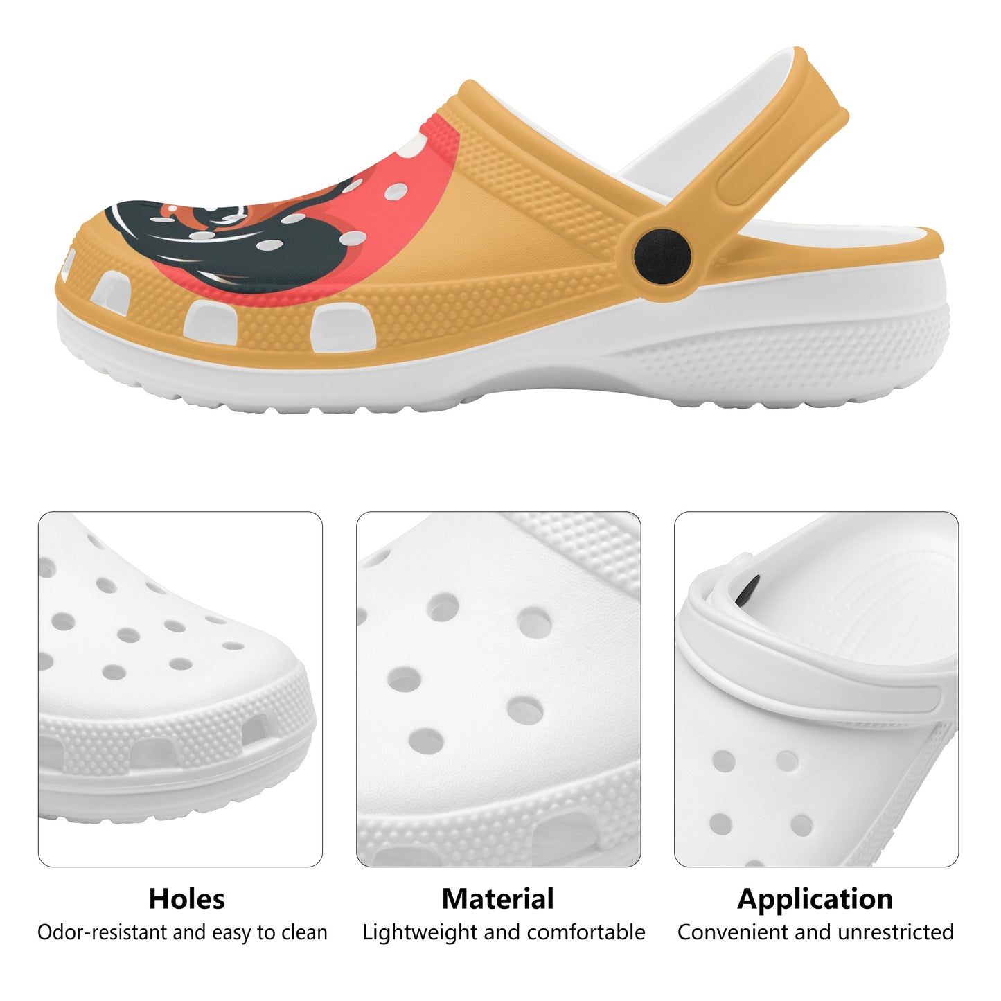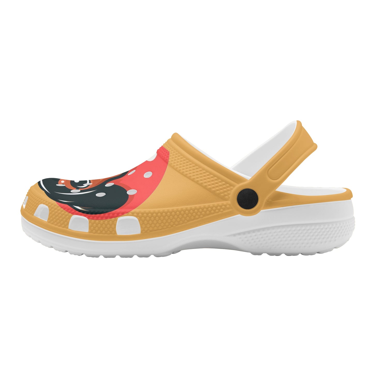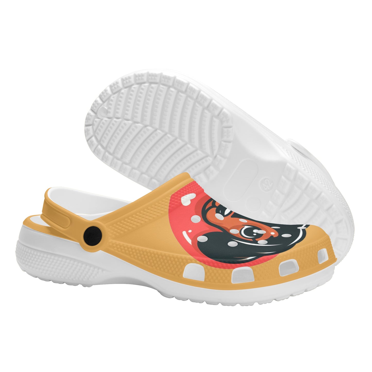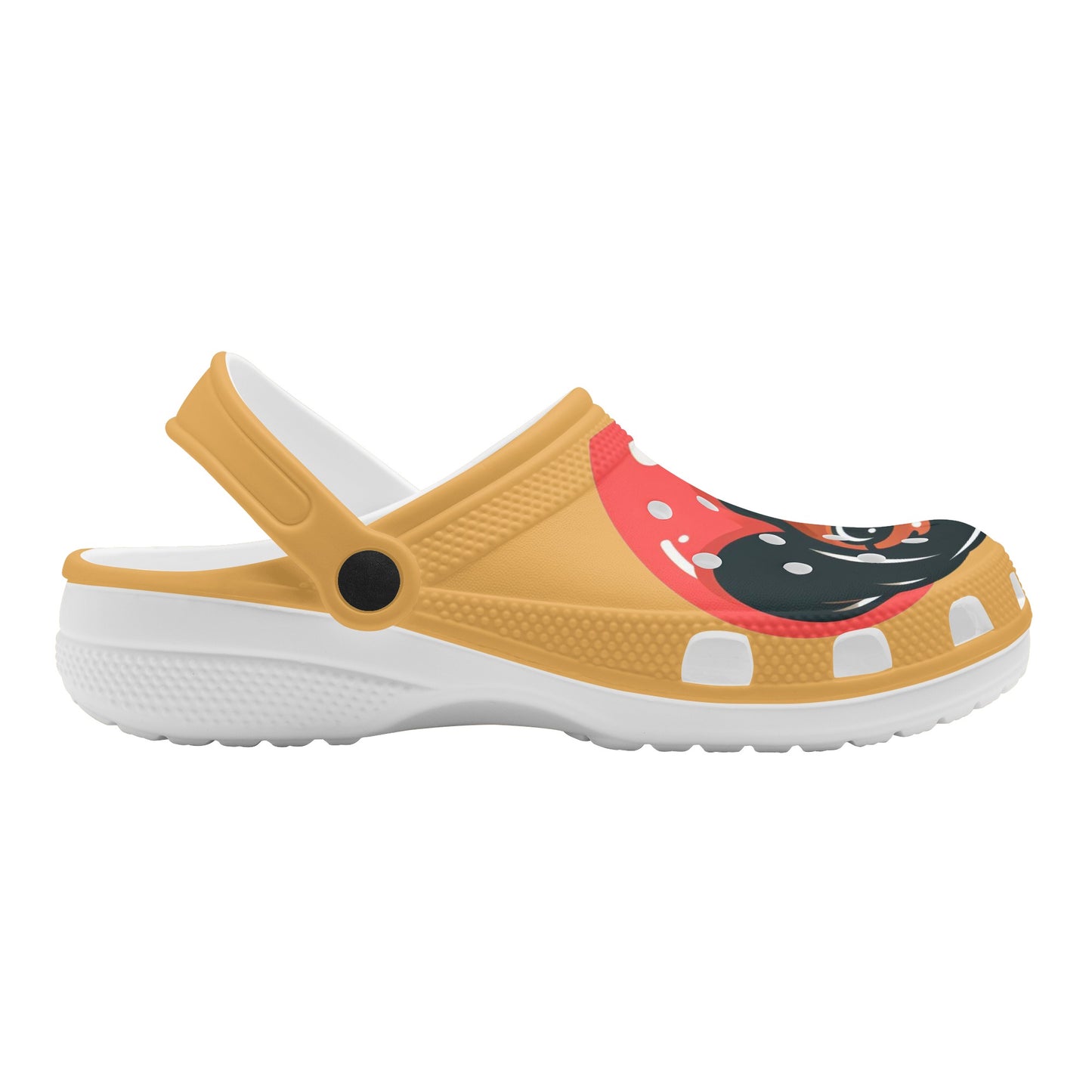 If you are a dachshund lover, you will adore these custom all over printed clogs that feature charming dachshund images. These clogs are not only fashionable, but also comfortable and functional. They are made of high quality EVA material that is flexible and durable, and they have a rounded style and vent holes for added fun and breathability. The pivoting heel strap allows you to easily slip them on and off, and also provides a more secure fit. The sublimation printing technique ensures vibrant colors and creative ideas that will make your clogs stand out. Whether you wear them at home, at the garden, or at work, these clogs will keep your feet cozy and your dachshund love strong. To keep them in good condition, simply hand wash them in cold water and air dry them. Order yours today and enjoy the compliments from fellow dachshund fans!