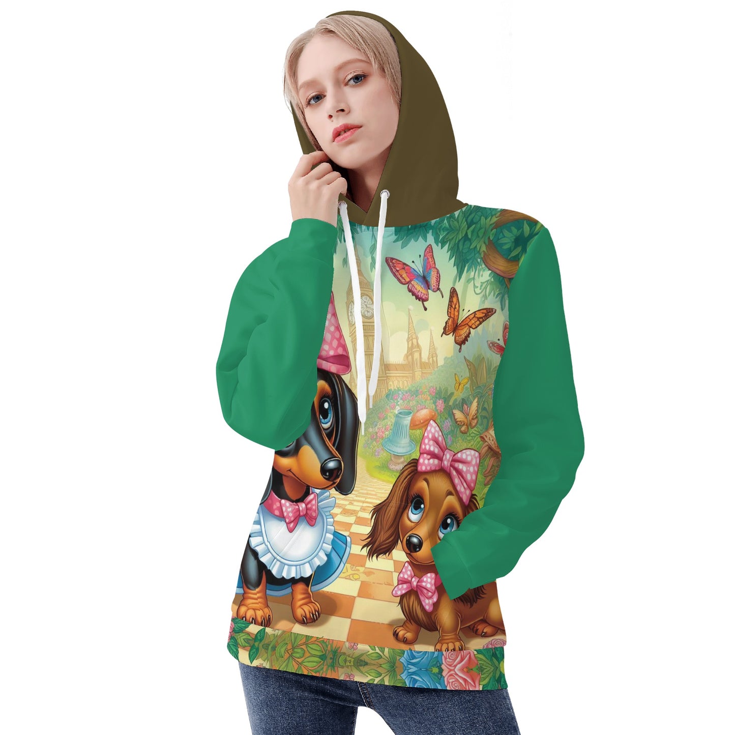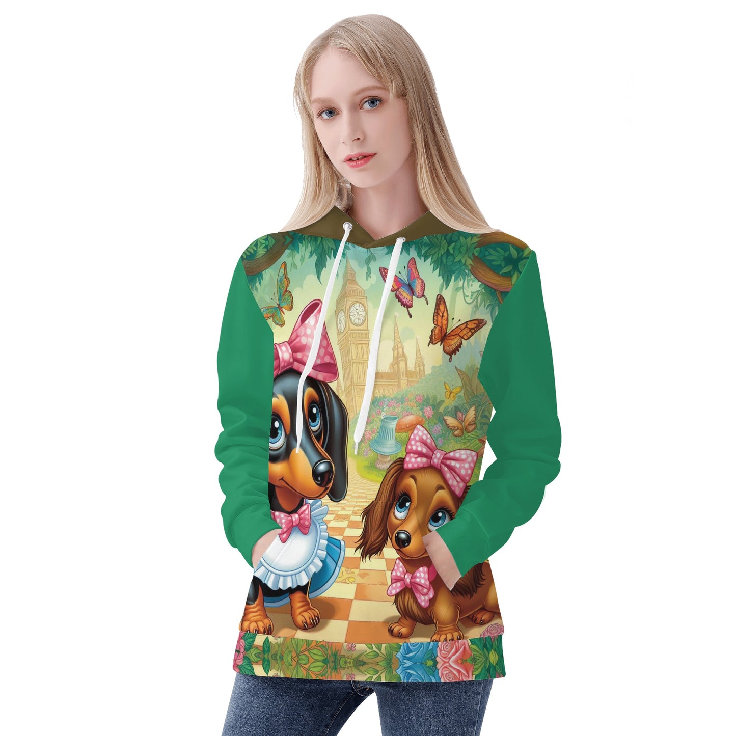 If you love dachshunds, you will love this cozy and stylish women’s hoodie. This hoodie is made of polyester material that is soft, comfortable, and warmer for daily wear. It is cut and sewn piece by piece to fit your body perfectly. It has a hood with drawstrings and a kangaroo pocket for extra warmth and convenience.